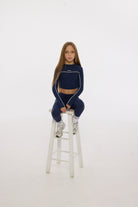 • Features: Smooth texture, long sleeve crop, with high waisted leggings with subtle white piping.