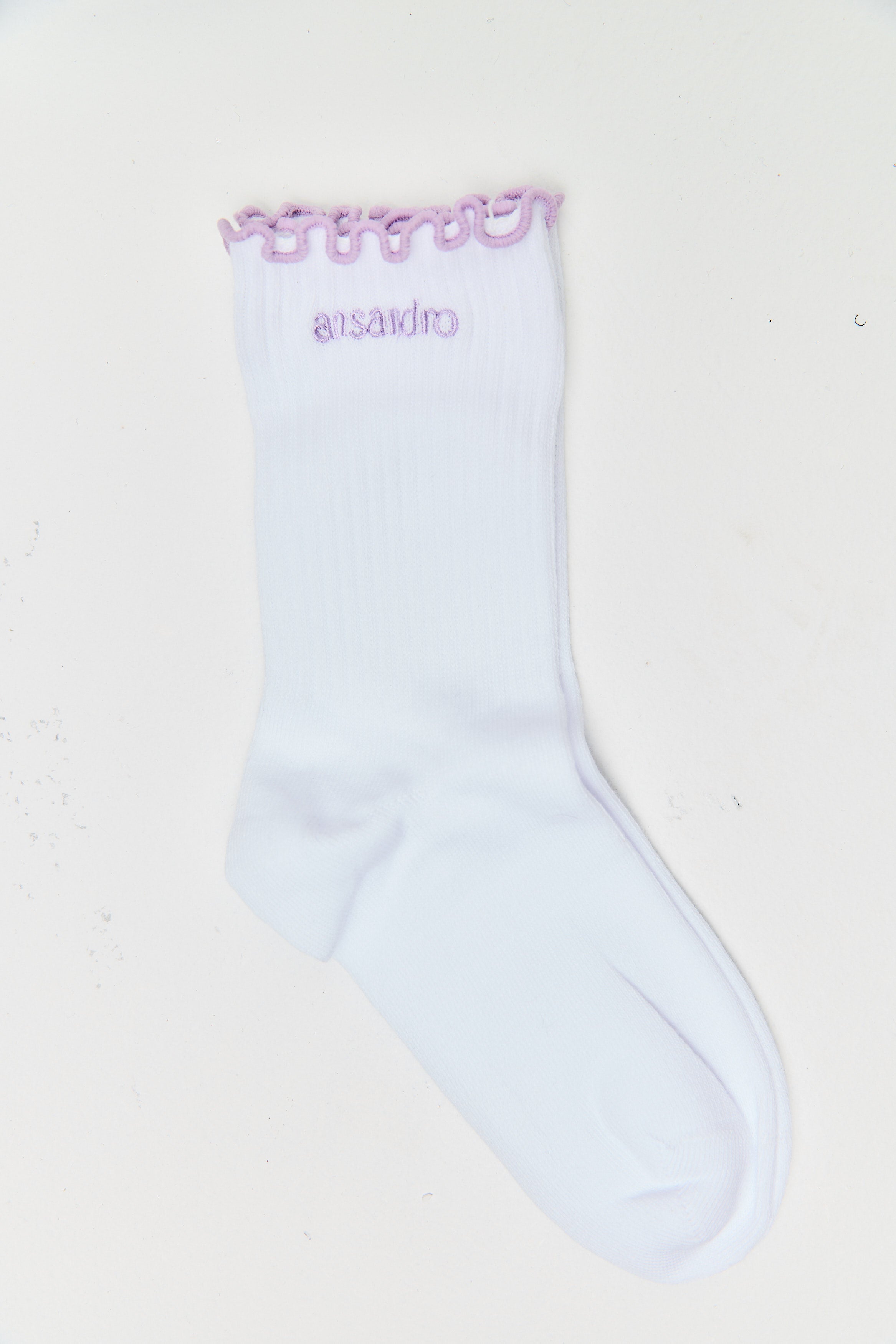 White Half-Crew Sock / Lilac Lettuce Edge
